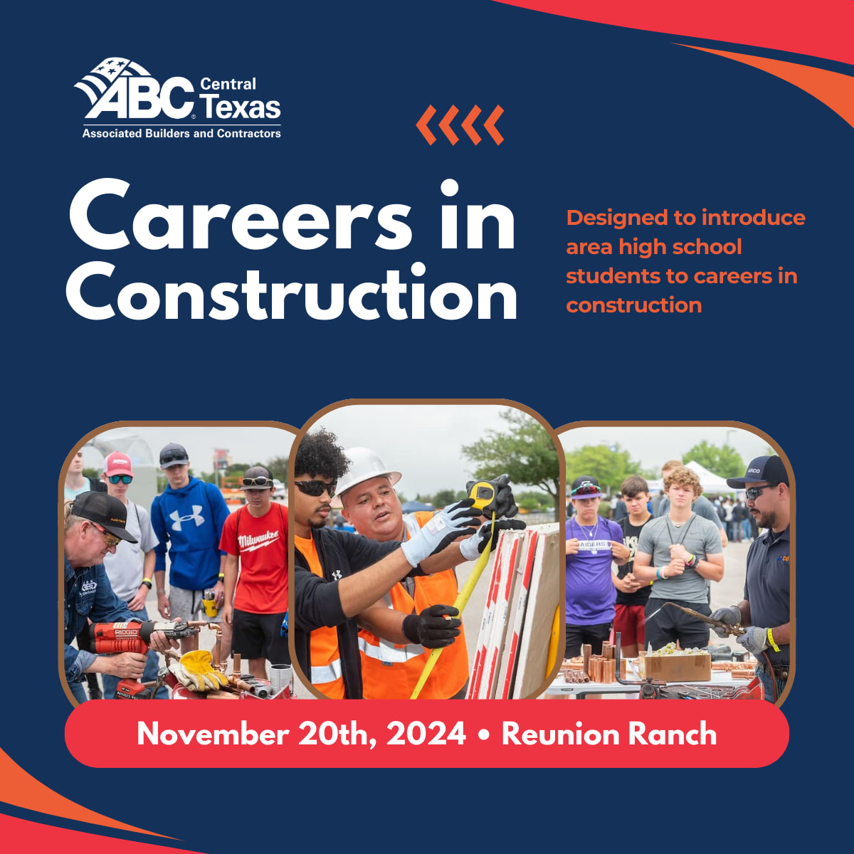 Join us Wednesday, November 20, as we introduce the construction industry to high school students throughout Central Texas. Register your company to host a hands-on construction career experience for these students!